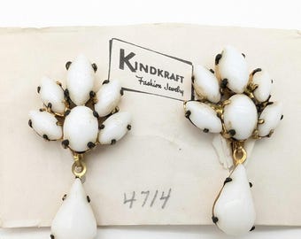 Vintage White Milk Glass Screw Back Earrings by Kindkraft Jewelry